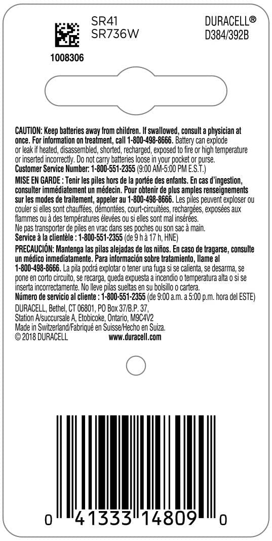 Duracell – 384/392 1.5V Silver Oxide Button Battery – long-lasting battery – 1 count