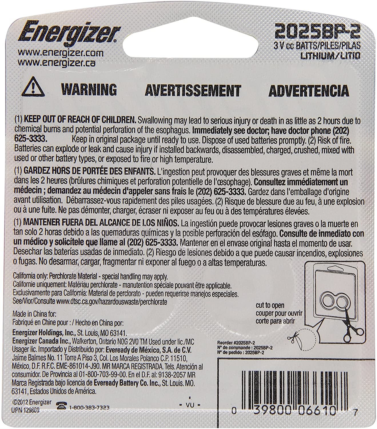 Energizer 2025BP-2 Lithium Button Cell Battery (2 Count)