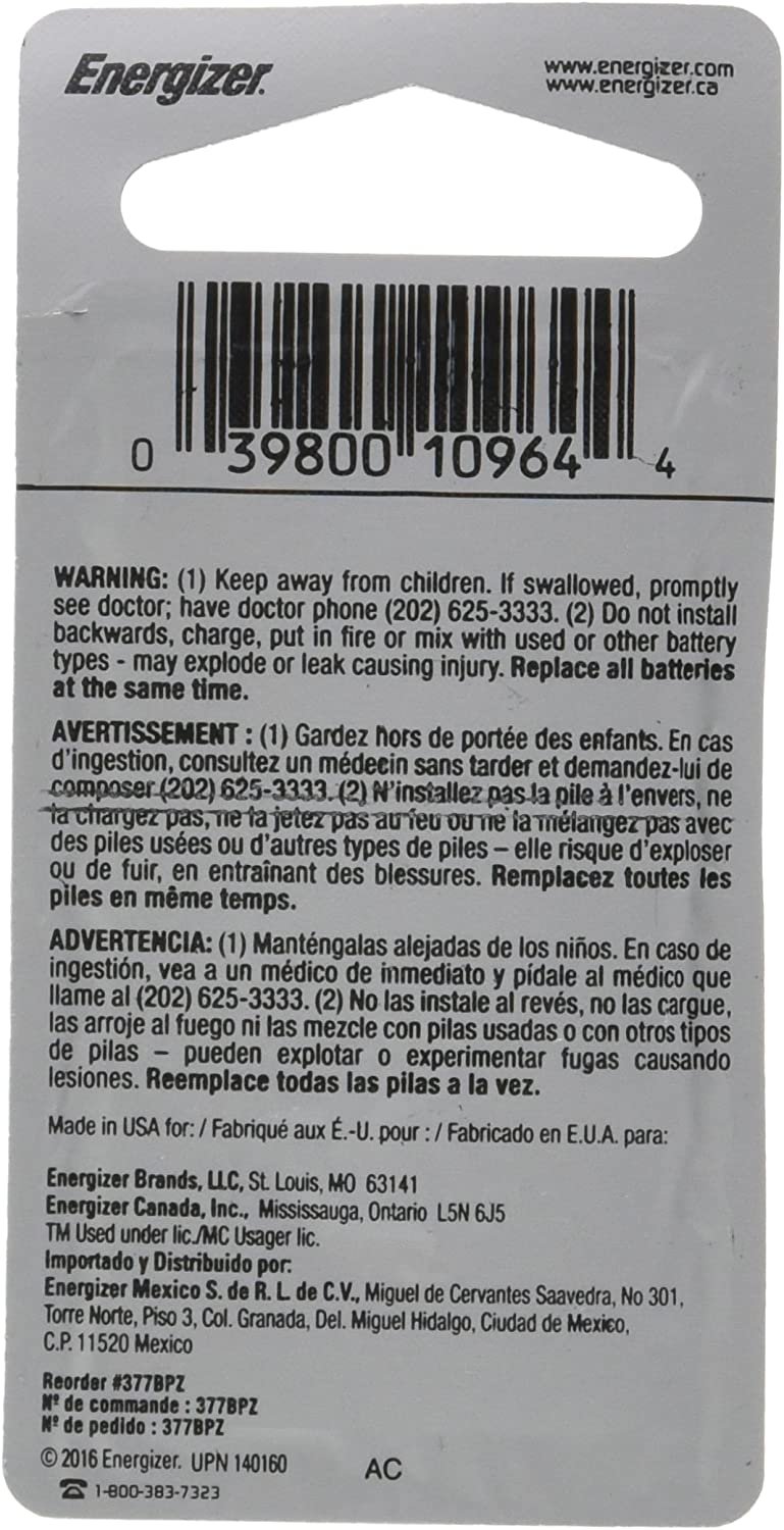 Energizer 377BPZ Zero Mercury Battery - 1 Pack