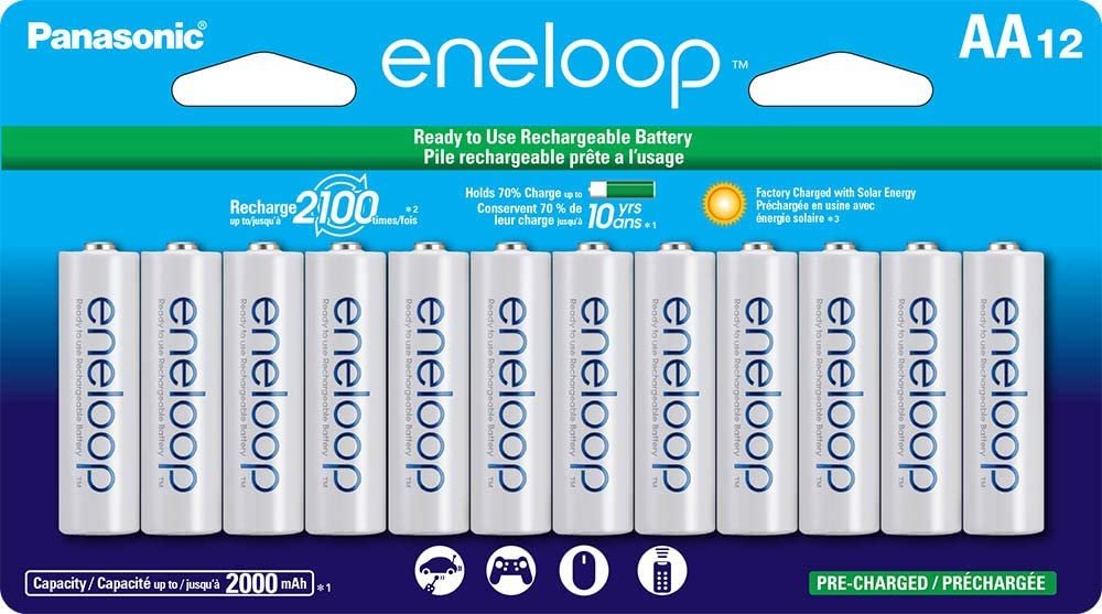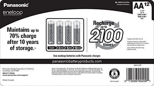 Panasonic BK-3MCCA12FA eneloop AA 2100 Cycle Ni-MH Pre-Charged Rechargeable Batteries, 12 Pack