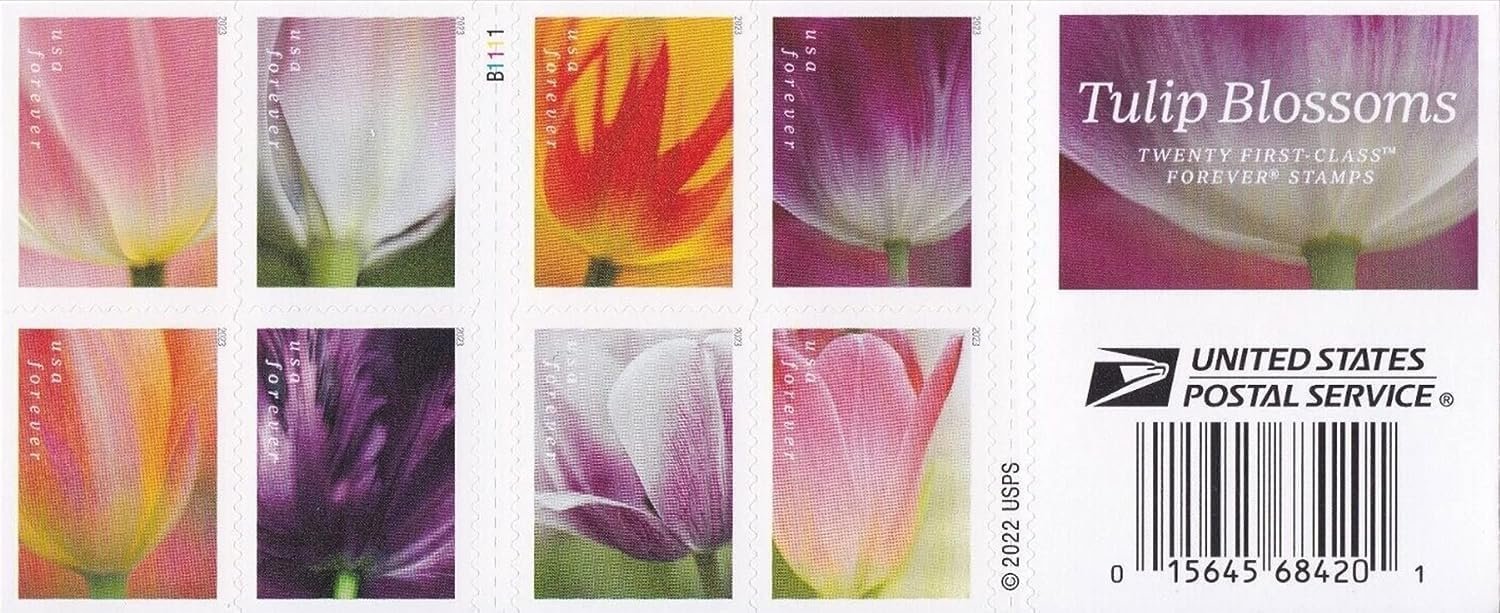 Tulip Blossoms Forever Postage Stamps Book of 20 Self-Stick Stamp for USPS First Class Envelopes (20 Stamps)