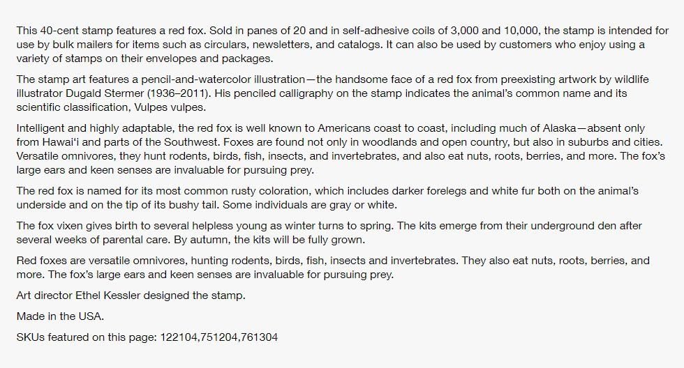 @ This is a Red Fox Additional Postage 40c Stamps.