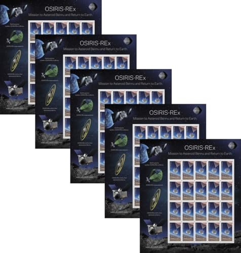 Celebrate space exploration with this new OSIRIS-REx stamp from the U.S. Postal Service. One stamp on a pane of 20 shows a capsule containing a sample of the asteroid Bennu parachuting down to Earth. This is the final step in NASA’s 7-year mission to study and map the asteroid. The OSIRIS-REx stamp is being issued as a Forever stamp. This Forever stamp will always be equal in value to the current First-Class Mail one-ounce rate.