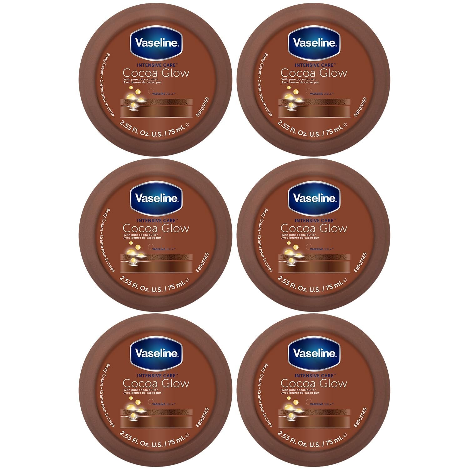 Vaseline Cocoa Glow Body Cream 6-Pack – Pure Cocoa Butter 48H Moisturizing Cream for Dry Skin, Travel-Size, 2.53 Fl Oz Ea