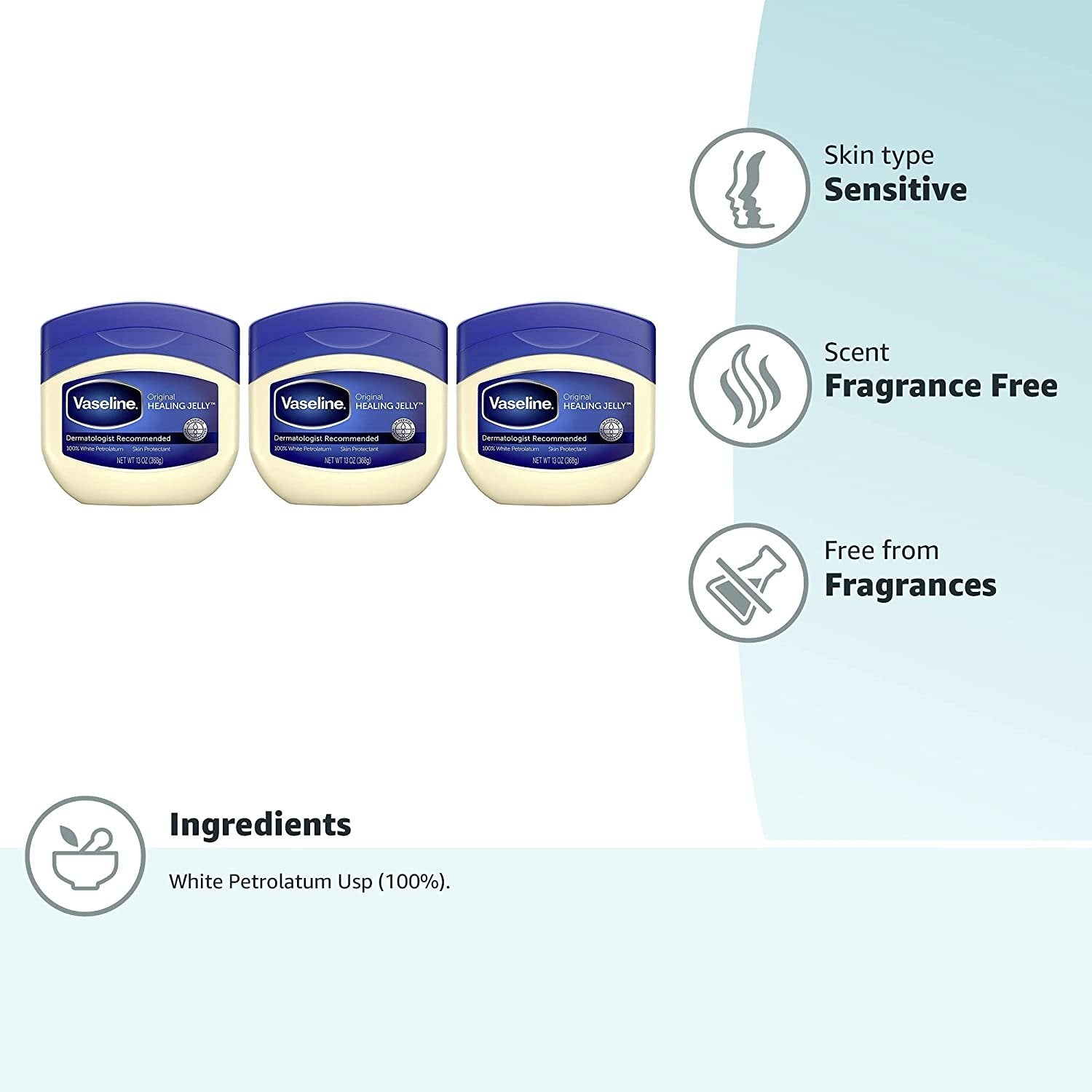 DERMATOLOGIST RECOMMENDED: Vaseline Original petroleum jelly is dermatologist recommend, fragrance free, hypoallergenic, non-irritating, and non-comedogenic.