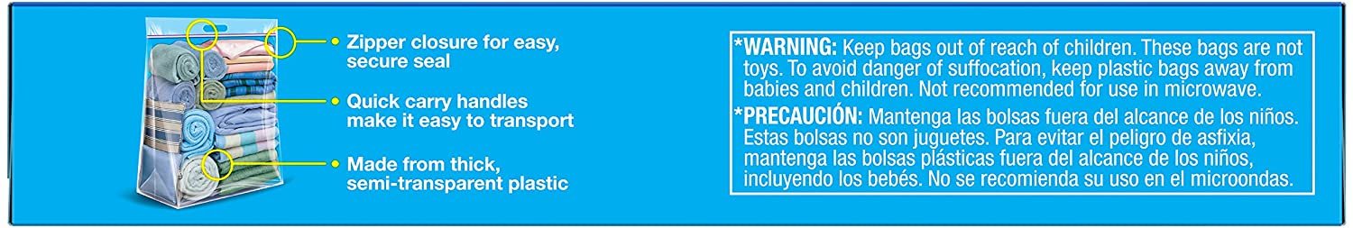 Get more out of the space in your home with Ziploc brand Big Bags. They’re the biggest, strongest, most versatile Ziploc brand Bags ever created. Use them to store clothing, bedding, holiday decorations, sports equipment and more. No more clutter in the garage, the basement or the closet.